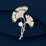 忘杏胸针高档女精致时尚银杏叶珍珠胸花小众设计感别针西装配饰品